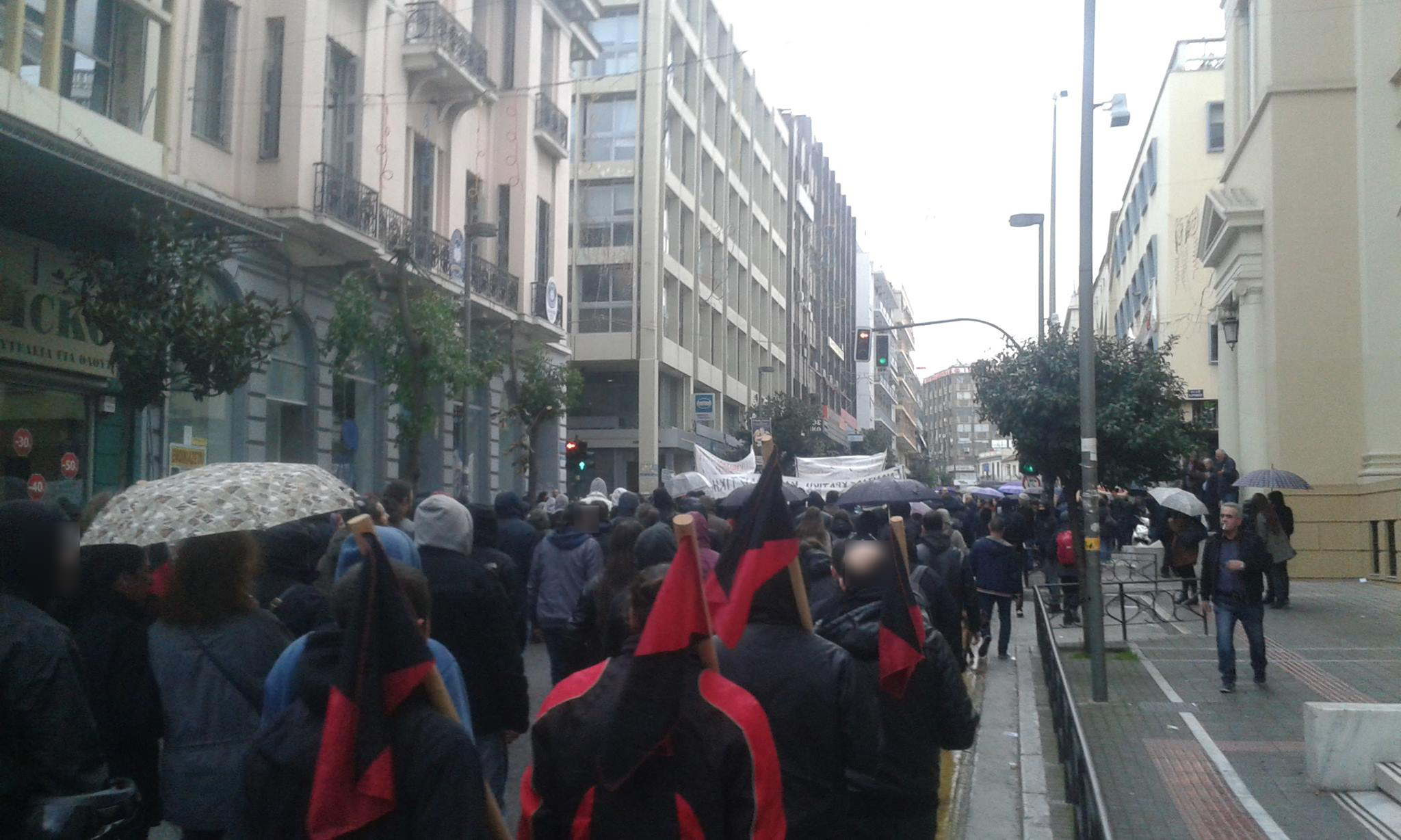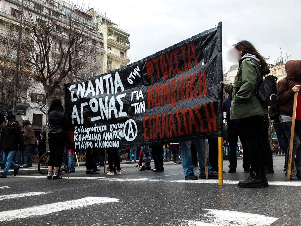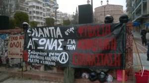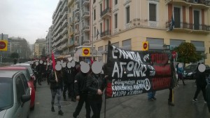 Από τις 10 το πρωί πραγματοποιήθηκε συγκέντρωση στο Παράρτημα με τη συμμετοχή φοιτητικών συλλόγων, ταξικών σωματείων και πολιτικών οργανώσεων. Το μπλοκ της Συνέλευσης Αναρχικών για την Κοινωνική και Ταξική Αντεπίθεση με κεντρικό πανό“ΕΝΑΝΤΙΑ ΣΤΗΝ ΚΡΑΤΙΚΗ ΚΑΙ ΚΑΠΙΤΑΛΙΣΤΙΚΗ ΒΑΡΒΑΡΟΤΗΤΑ ΝΑ ΟΡΓΑΝΩΣΟΥΜΕ ΤΗΝ ΚΟΙΝΩΝΙΚΗ ΚΑΙ ΤΑΞΙΚΗ ΑΝΤΕΠΙΘΕΣΗ” αριθμούσε περίπου 250-300 άτομα. Κατά τη διάρκεια της πορείας μοιράζονταν κείμενα και γράφονταν συνθήματα σε τοίχους με σπρέι. Στην πλατεία Όλγας αναρτήθηκε πανό από την αναρχική ομάδα “δυσήνιος ίππος” που έγραφε “ΕΝΑΝΤΙΑ ΣΤΗΝ ΚΡΑΤΙΚΗ ΚΑΙ ΚΑΠΙΤΑΛΙΣΤΙΚΗ ΒΑΡΒΑΡΟΤΗΤΑ – ΟΡΓΑΝΩΣΗ ΚΑΙ ΑΓΩΝΑΣ ΓΙΑ ΤΗΝ ΚΟΙΝΩΝΙΚΗ ΕΠΑΝΑΣΤΑΣΗ ΤΗΝ ΑΝΑΡΧΙΑ ΚΑΙ ΤΟΝ ΕΛΕΥΘΕΡΙΑΚΟ ΚΟΜΜΟΥΝΙΣΜΟ”, ενώ πρωτοβουλία συντρόφων κρέμασε πανό στην ταράτσα του εργατικού κέντρου ενάντια στην εξόρυξη χρυσού στις Σκουριές.